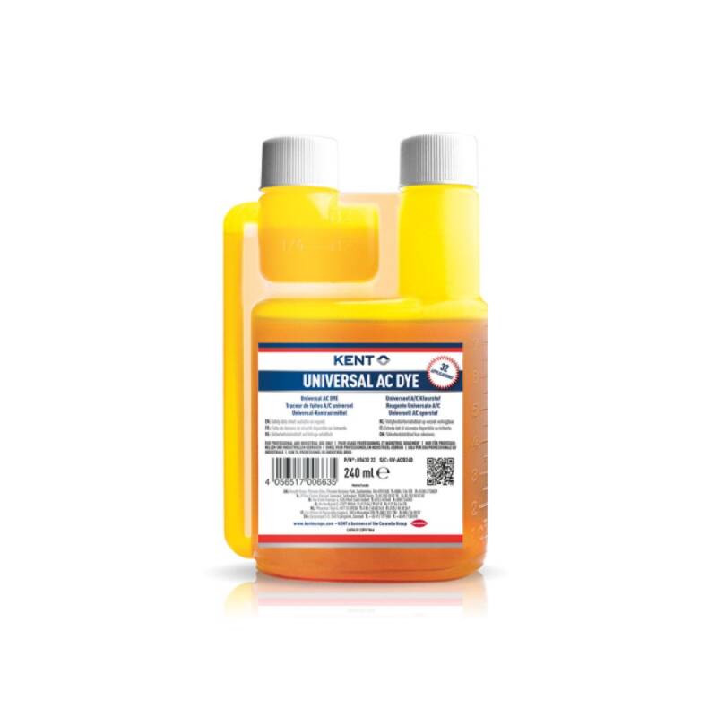 Description : Colorant à utiliser avec la lampe UV afin de localiser la zone de fuite dans le système à air conditionné; convient pour les gaz R134A et R1234YF; Compatible avec toutes les huiles PAG/POE et PAO.